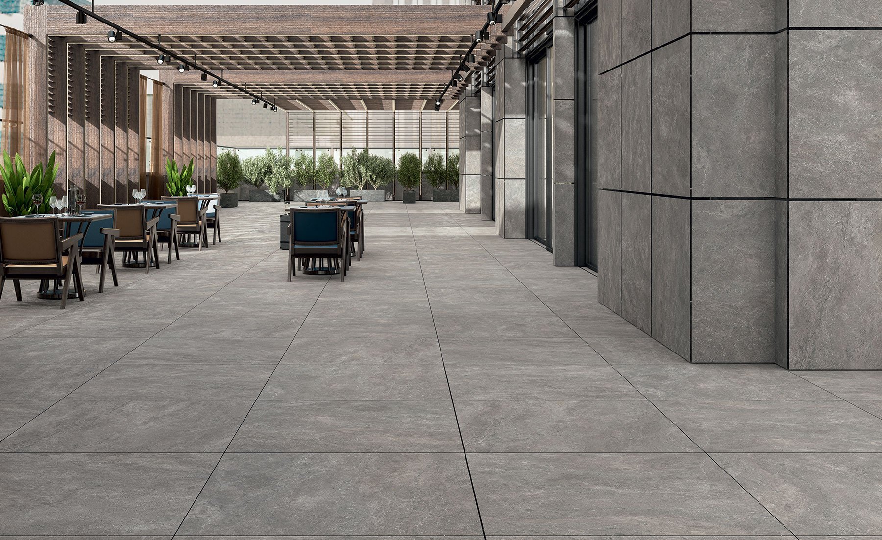 — В составе Novabell Thermae есть керамогранит, мозаика с рисунками под бетон.