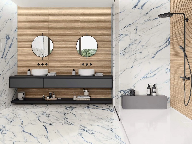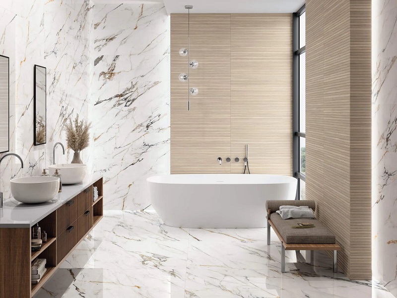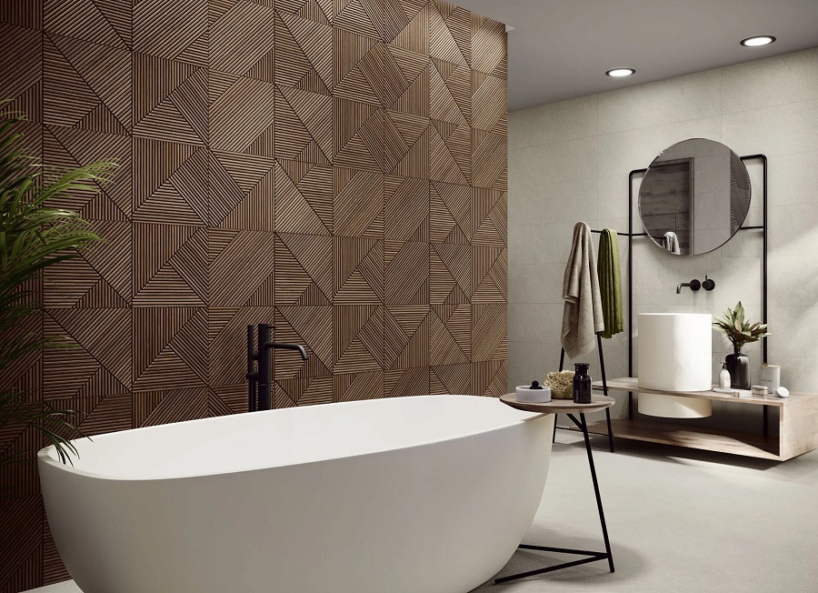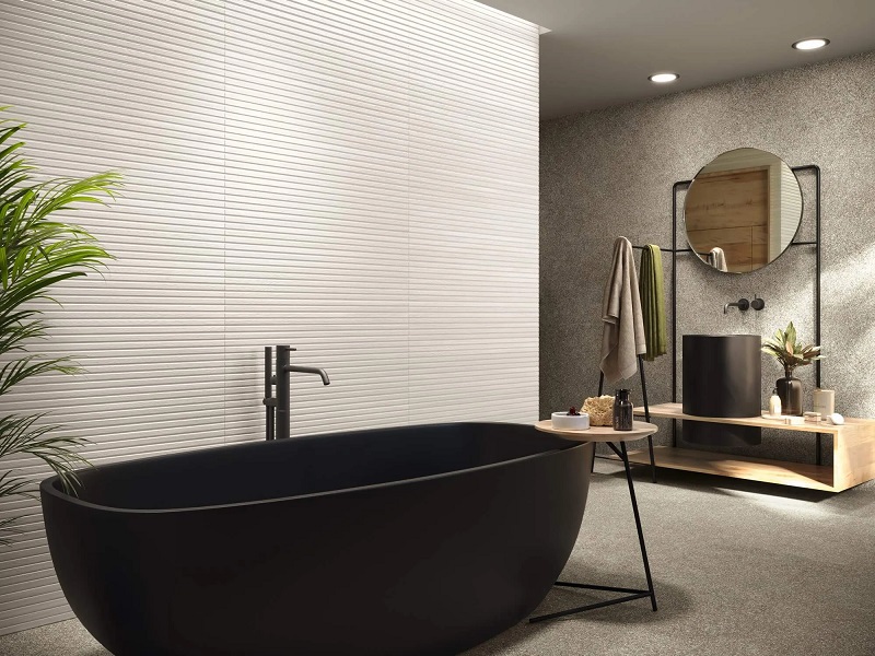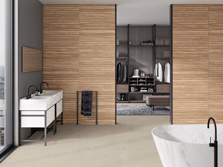 — Коллекция, а также её отдельные элементы подходят для ванной, для душа. Дизайнеры Royalstone могут составить для вас бесплатный 3D проект с использованием плитки из этой коллекции Porcelanite Dos.