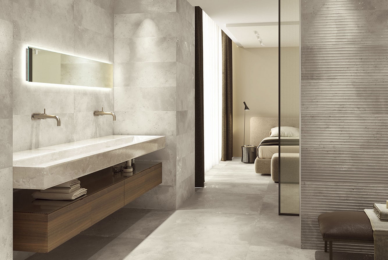 — Коллекция, а также её отдельные элементы подходят для ванной, для душа. Дизайнеры Royalstone могут составить для вас бесплатный 3D проект с использованием плитки из этой коллекции Porcelanite Dos.