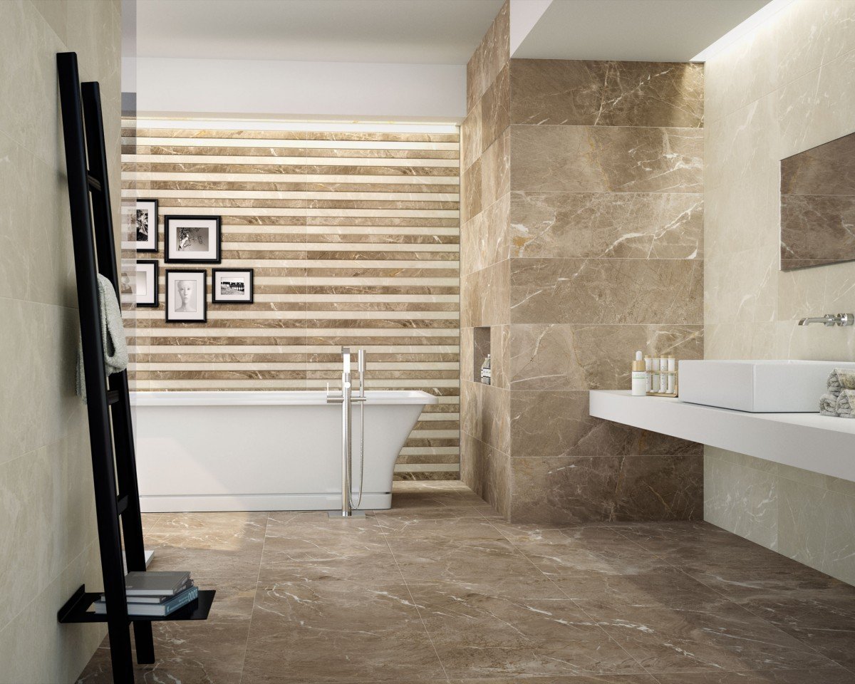 — Коллекция, а также её отдельные элементы подходят для ванной, для душа. Дизайнеры Royalstone могут составить для вас бесплатный 3D проект с использованием плитки из этой коллекции Porcelanite Dos.