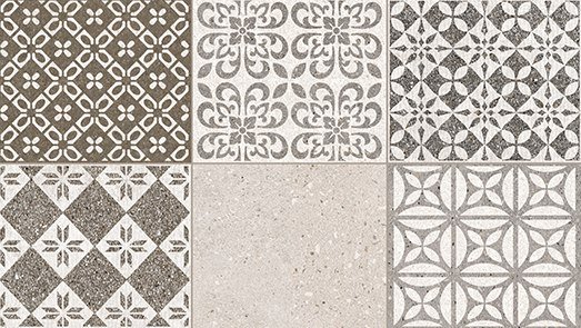 Испанская керамическая плитка Porcelanosa Marbella Stone — 450x1200, натуральная поверхность, рисунок состоит из набора различных орнаментов, арт. 443809. Marbella Stone — настенная керамическая плитка серого цвета.