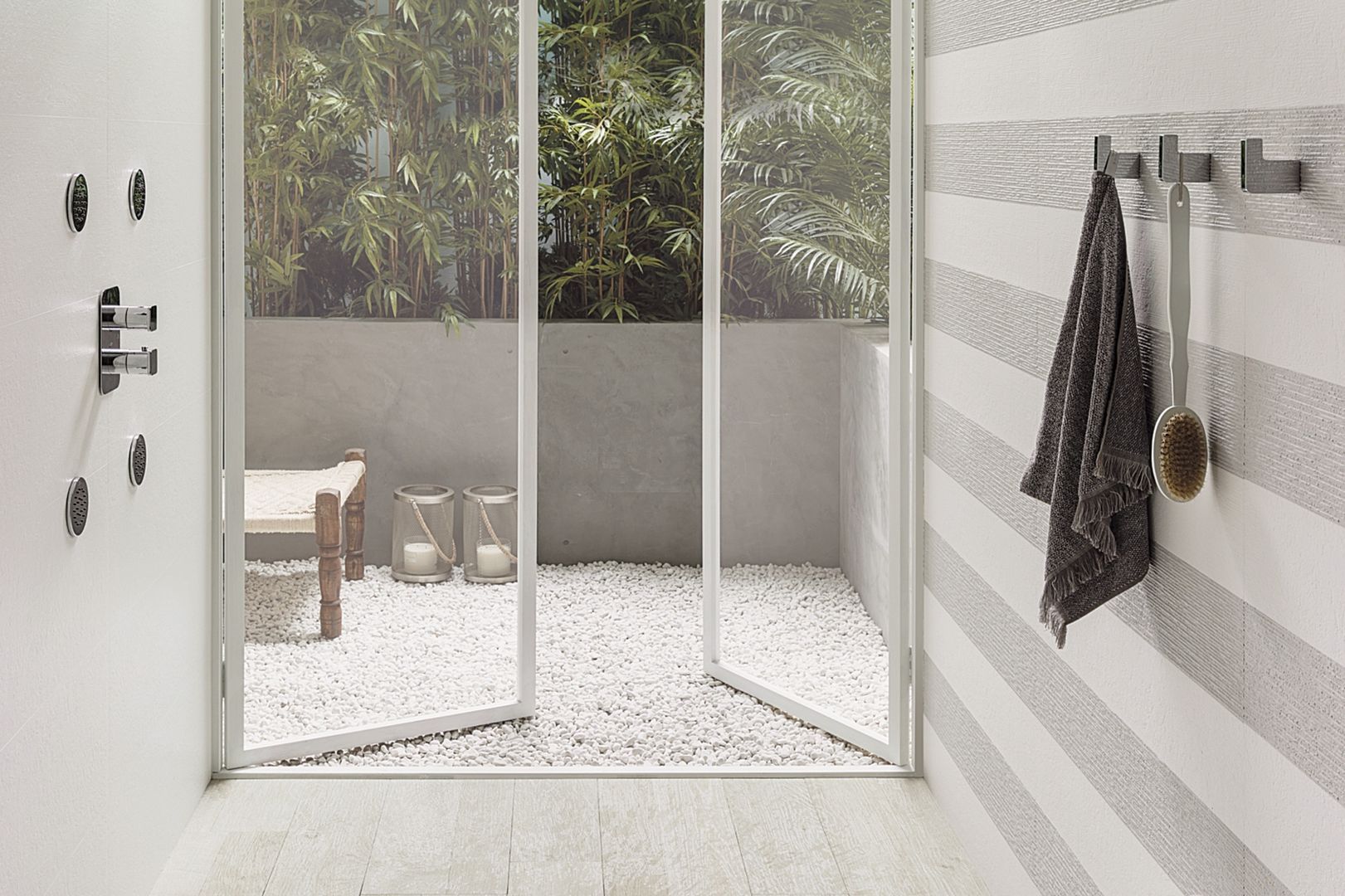 — Коллекция, а также её отдельные элементы подходят для ванной, для душа. Дизайнеры Royalstone могут составить для вас бесплатный 3D проект с использованием плитки из этой коллекции Porcelanosa.