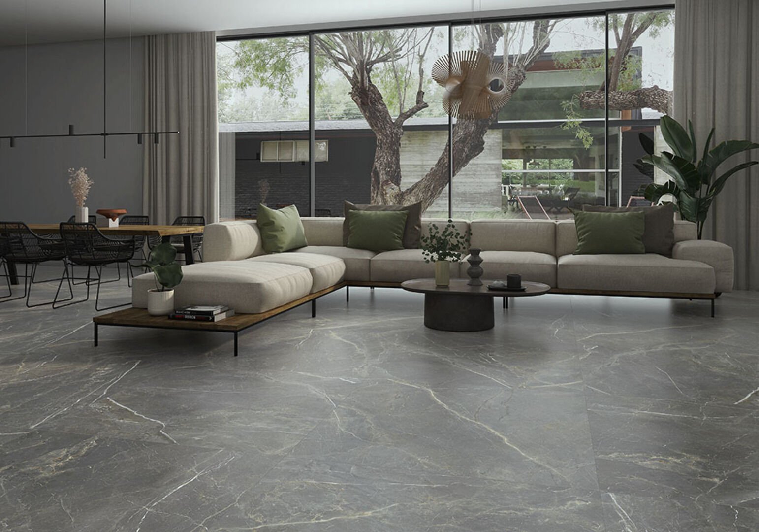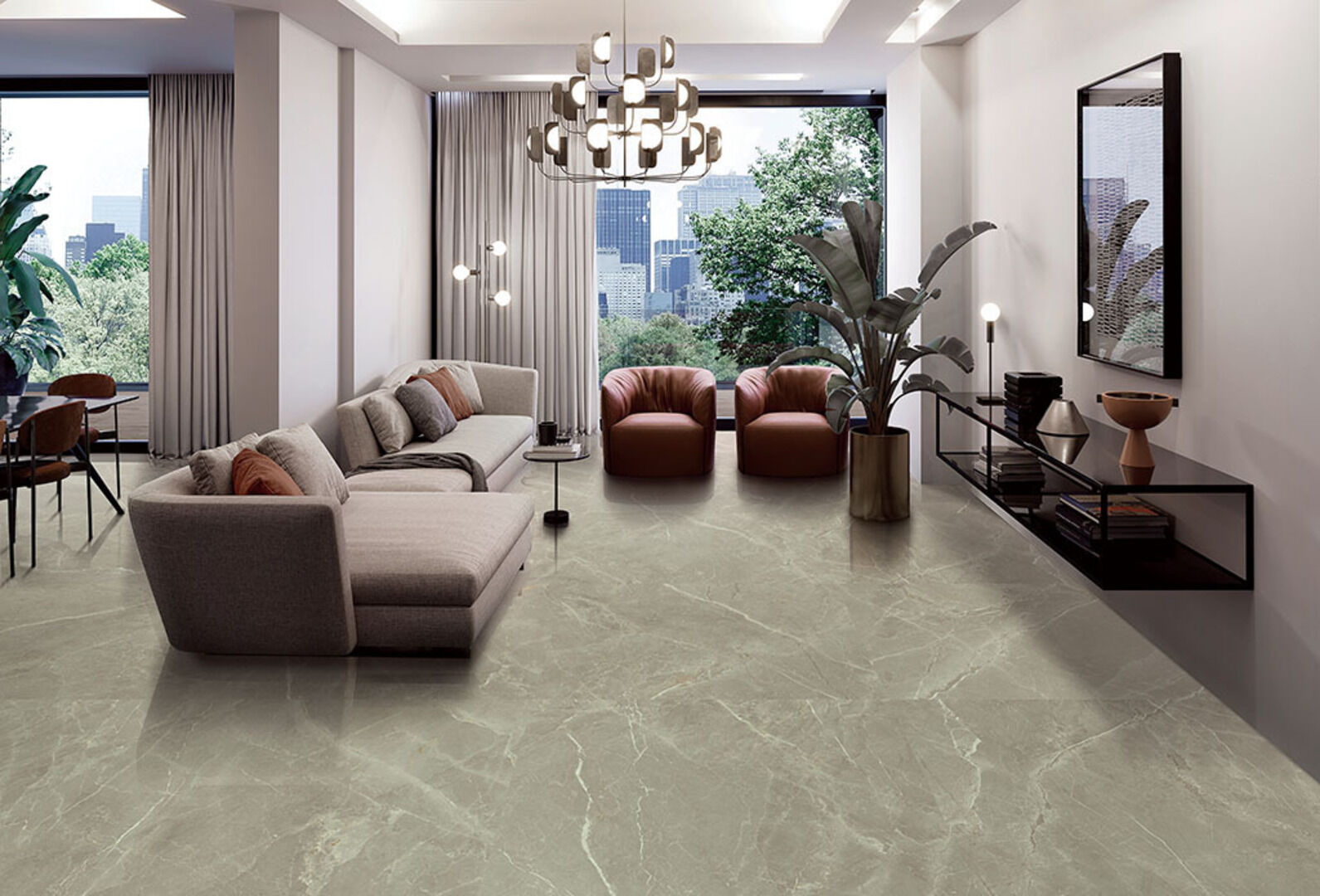 — В составе Prissmacer Fior Di Bosco есть керамогранит, широкоформатный керамогранит, мозаика с рисунками под мрамор.
