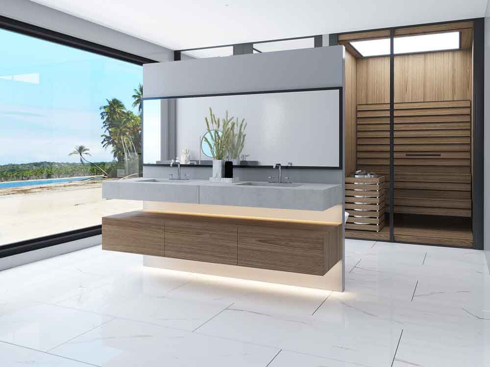 — Коллекция, а также её отдельные элементы подходят для ванной, для душа. Дизайнеры Royalstone могут составить для вас бесплатный 3D проект с использованием плитки из этой коллекции Qua.