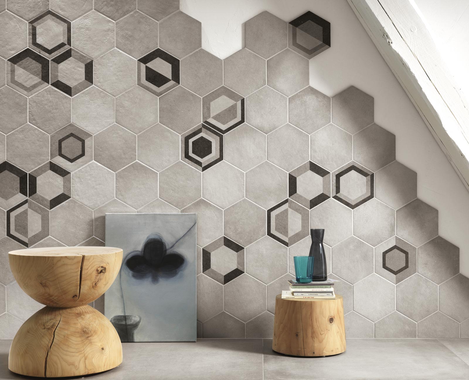 — В составе Ragno Rewind есть керамогранит, декоративные элементы, мозаика, панно, керамическая плитка, мозаика с рисунками под камень, орнамент, геометрия, узор, с цветами, волны.