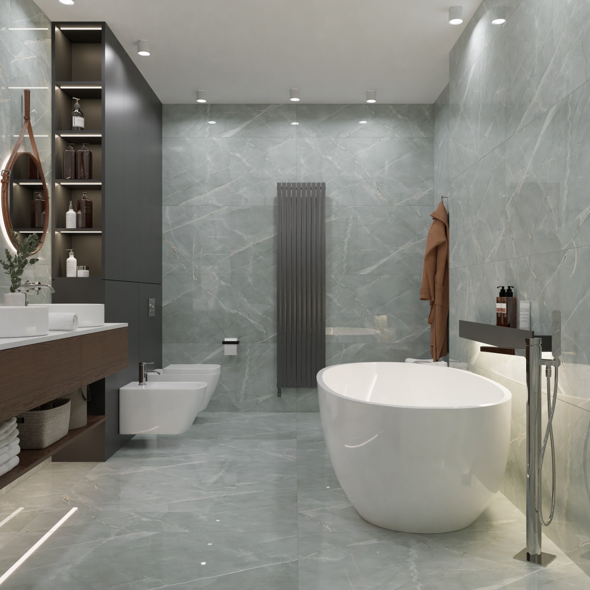 — В составе Royce William Grey есть керамогранит, мозаика с рисунками под мрамор.