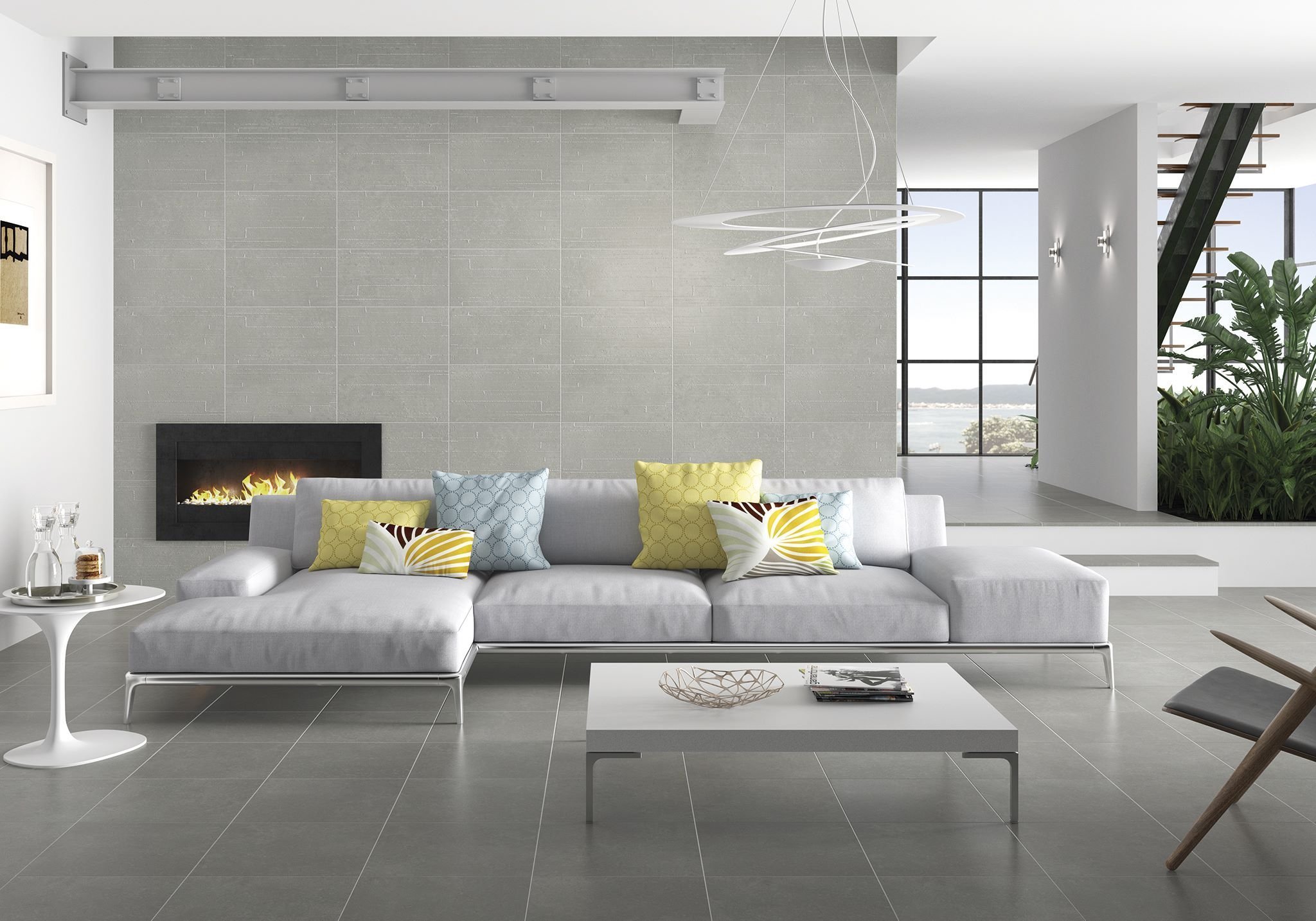 — В составе Saloni Cover есть керамическая плитка, керамогранит, мозаика с рисунками под бетон, в полоску, геометрия.