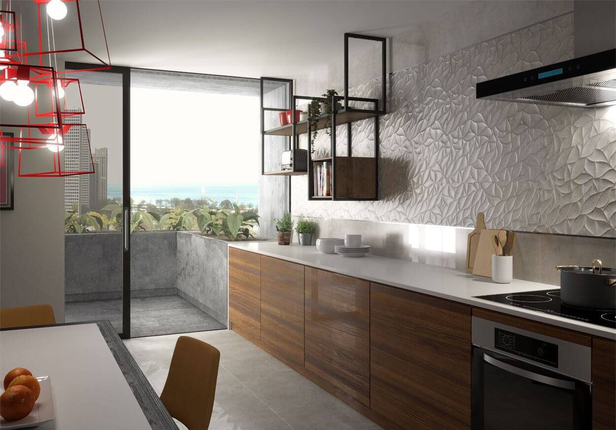 — В составе Saloni Quarz есть керамическая плитка, мозаика с рисунками под бетон, абстракция, волны.