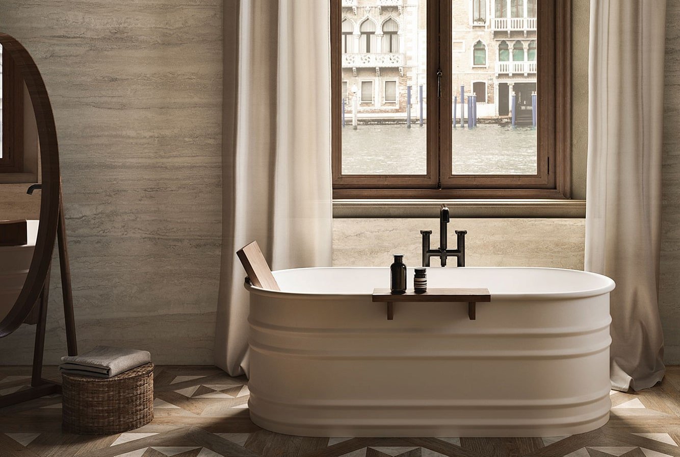 — Коллекция, а также её отдельные элементы подходят для ванной, для душа. Дизайнеры Royalstone могут составить для вас бесплатный 3D проект с использованием плитки из этой коллекции Sant Agostino.