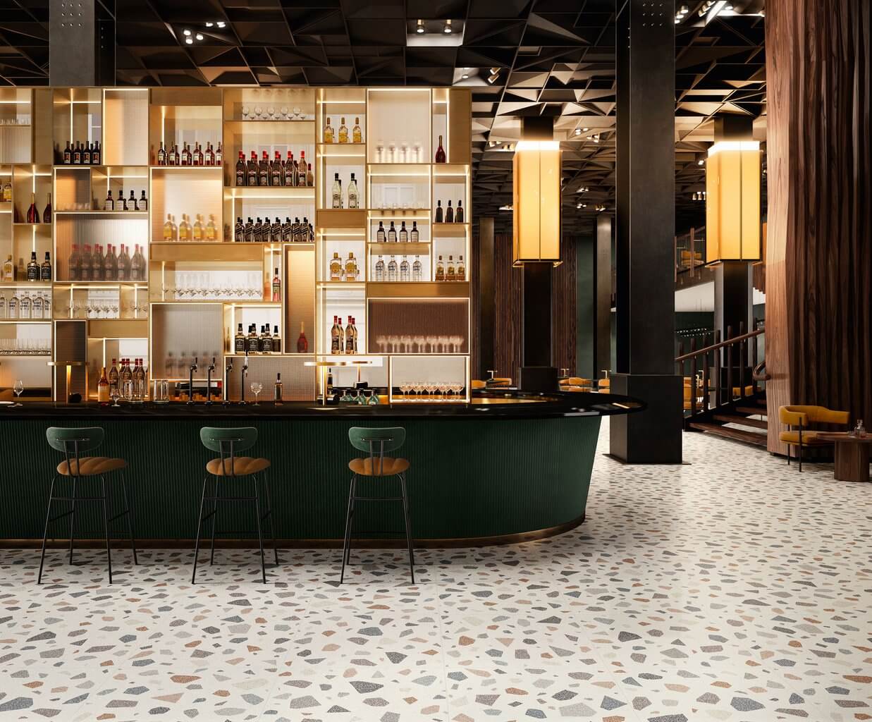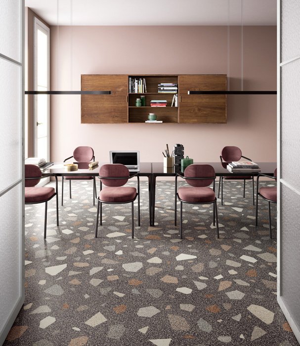 — В составе Sant Agostino Newdeco есть керамогранит, декоративные элементы, мозаика, бордюры, ступени, мозаика с рисунками под камень, орнамент, абстракция.