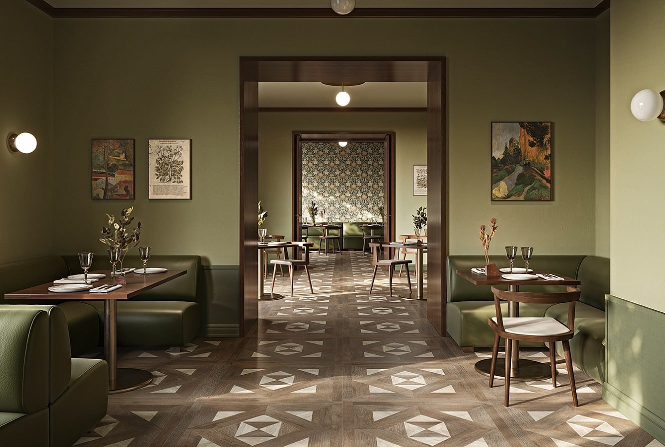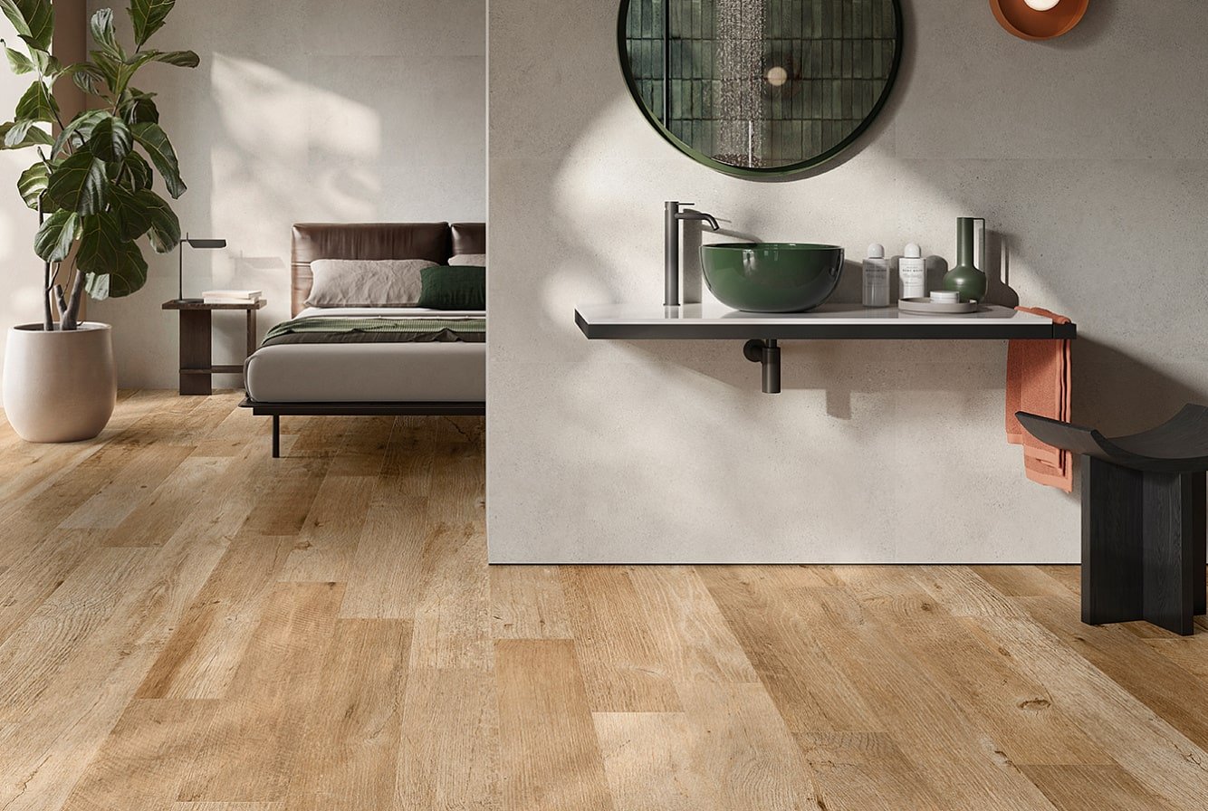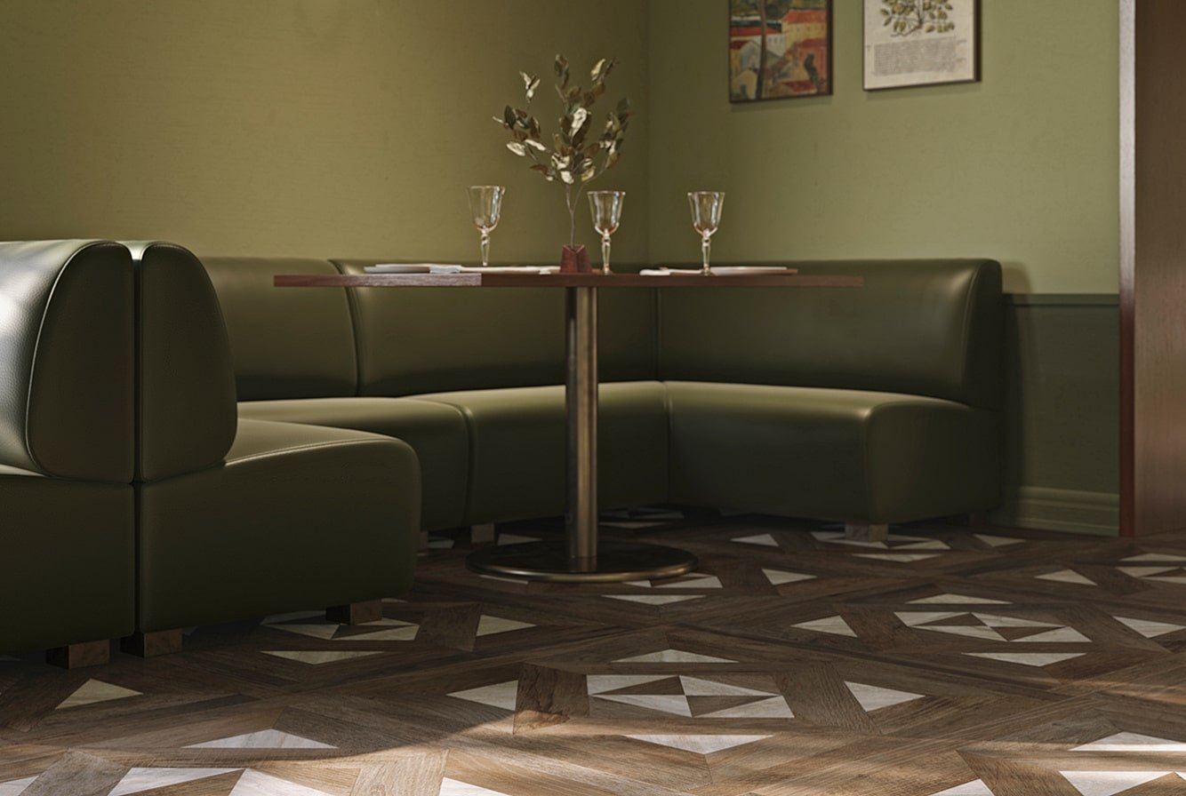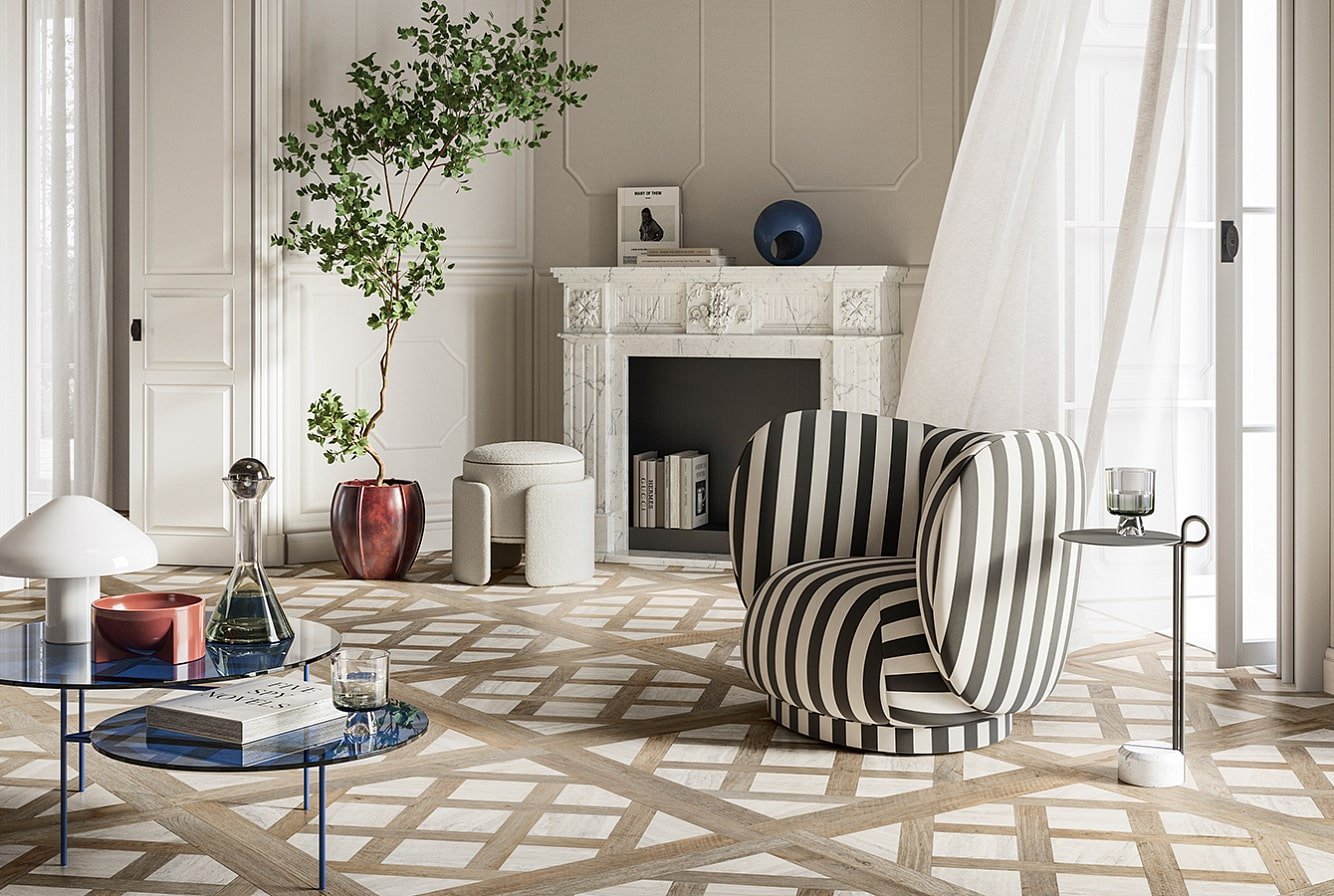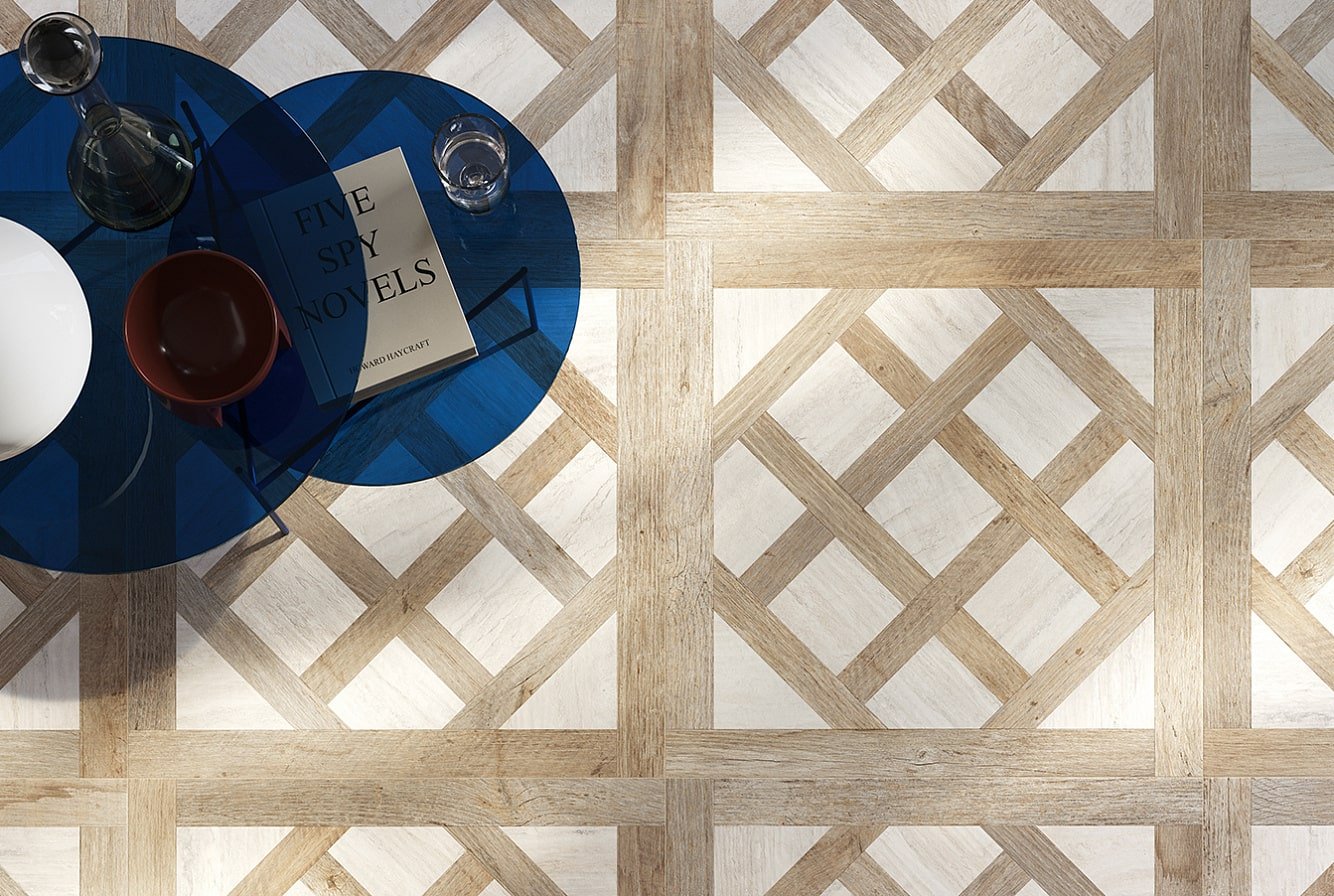 — В составе Sant Agostino Yorkwood есть керамогранит, декоративные элементы, мозаика с рисунками под дерево.