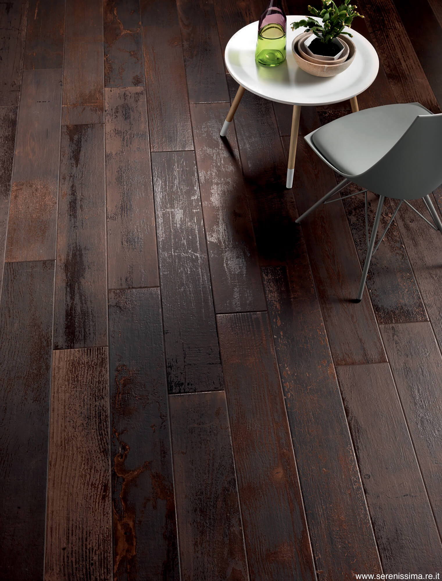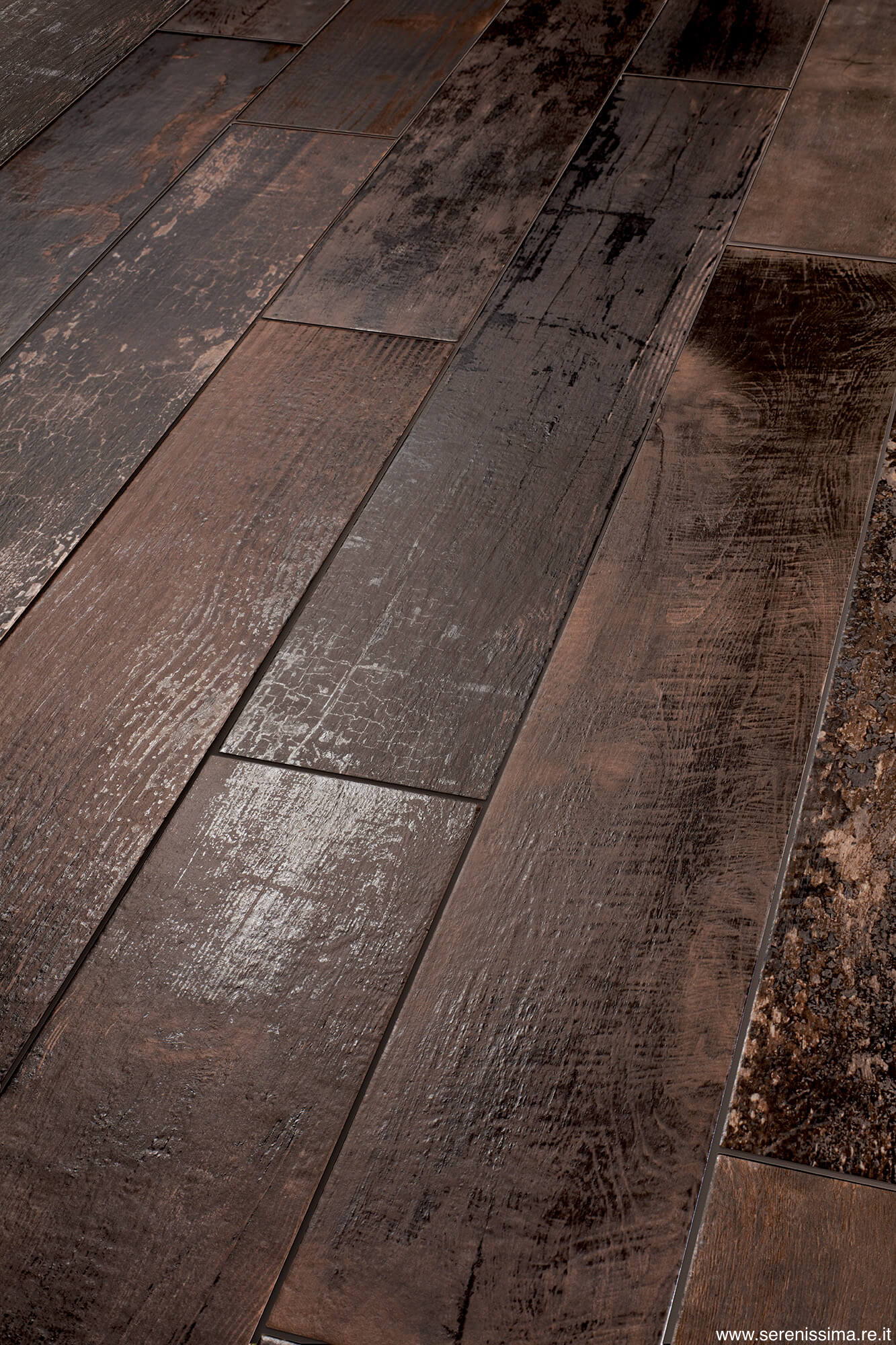 Популярный итальянский бренд Serenissima представляет новую изысканную коллекцию плитки Serenissima Charwood – это стильная подборка керамогранита для вашего дома, которая создаст атмосферу тепла и уюта. Производители предлагают плитку для пола размером 65 на 400 мм, а также 189 на 1180 мм. Тип поверхности – матовый. Доступно несколько цветовых вариаций: серый, коричневый и черный. Керамогранит стилизованный под дерево, поэтому он смотрится особенно стильно. Плитка для пола Charwood очень практичная, так как она долговечная и устойчива к химическому воздействию.