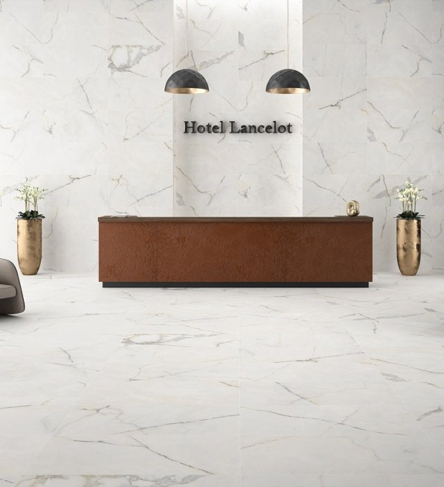 — В составе STN Ceramica Lancelot есть керамическая плитка, керамогранит, мозаика с рисунками под мрамор, под мозаику, волны.