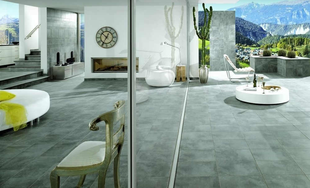 — В составе Stroeher Aera X есть керамогранит, ступени, бордюры, спецэлементы, мозаика с рисунками под металл, под камень.