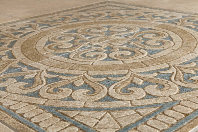 — В составе Tagina Apogeo14 есть бордюры, керамогранит, вставки, декоративные элементы, мозаика с рисунками узор, под камень.