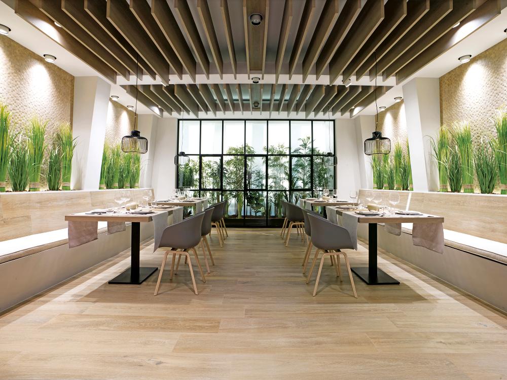 — В составе Venis Tanzania есть керамогранит, мозаика с рисунками под дерево, в полоску, геометрия.