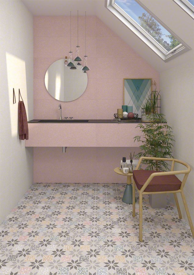 Оригинальная и неповторимая коллекция испанской керамической плитки Vives Cies создана для того, чтобы воплощать в реальность самые невероятные дизайнерские идеи относительно интерьера ванной комнаты. Наличие множественных цветовых оттенков дает волю фантазии и возможность сделать помещение именно таким, каким вы его хотите видеть. Керамическая плитка для ванной Vives Cies применяется для облицовки стен и пола, имеет формат 32 на 99 см. Тип поверхности изделий матовый с самыми различными рисунками – полосы, геометрия, стилизация под камень.
